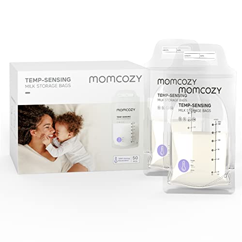 50PCS Momcozy Breastmilk Storing Bags, Temp-Sensing Discoloration Milk Storing Bags for Breastfeeding, Disposable Milk Storage Bag with 6oz Self Standing, No-Leak Milk Freezer Storage Pouches