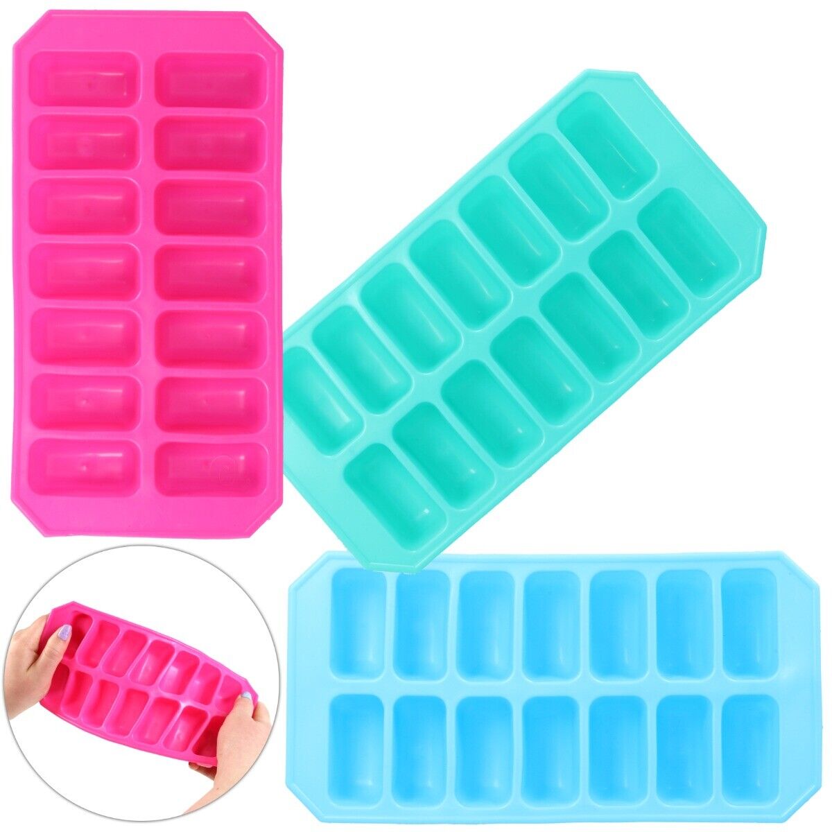SILICONE ICE CUBE TRAY 14 Hole DEEP Easy Clean Pop Out Flexible Freezer Mould UK