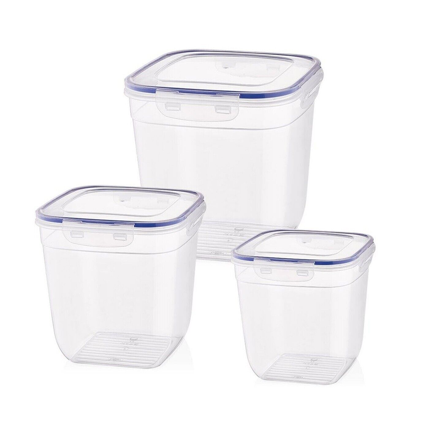New 3x Clear Plastic Container Storage Box Airtight Kitchen Food Freezer Tub UK