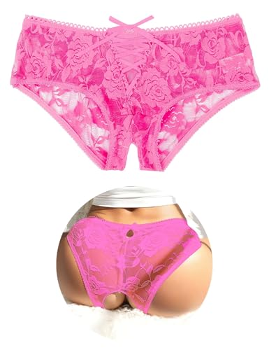 ohyeahlady Thongs for Women Sexy Panties Plus Size Sheer Lace Underwear Soft Stretchy French Knickers Low Rise Brazilian Knickers Underpants Lace Up Bikini Briefs 1 Pack Pink Size 12 14