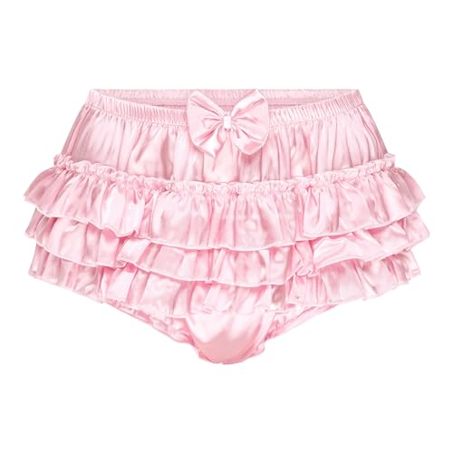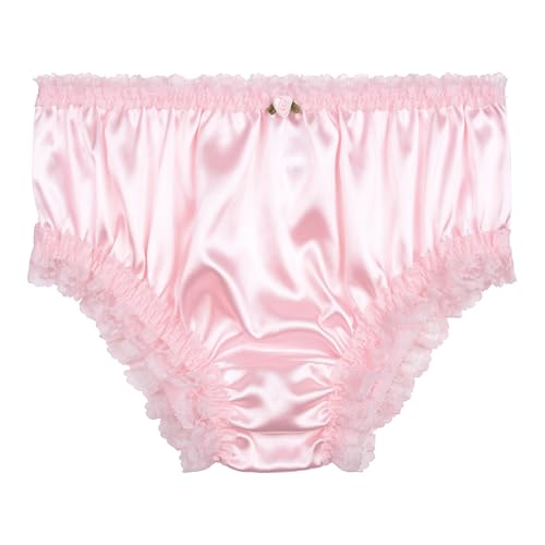 Satini Frilly Lace Sissy Ruffled French Knickers Briefs Lingerie Silky Satin Underwear Panties (Baby Pink, XL)
