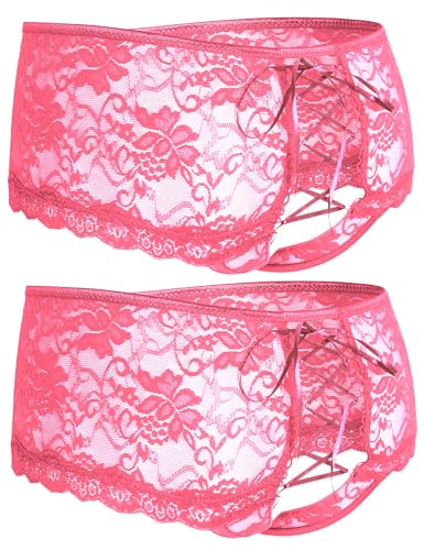 ohyeahlady Womens Lace French Knickers Soft Stretchy Bikini Briefs Back Cross Thongs Hipster Pantie Plus Size Cheeky Underwear Multipack 2Pack Pink