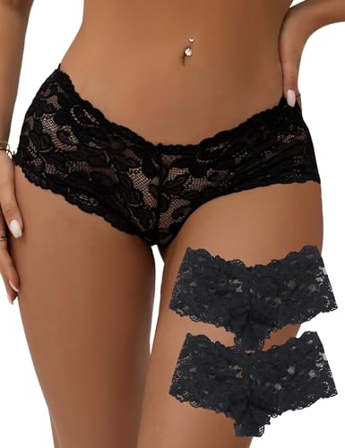 ohyeahlady Women Lace French Knickers Ladies Cotton Crotch Hipster Panties Brazilian Cheeky Underwear 2 Pack Sexy Bikini Briefs Black