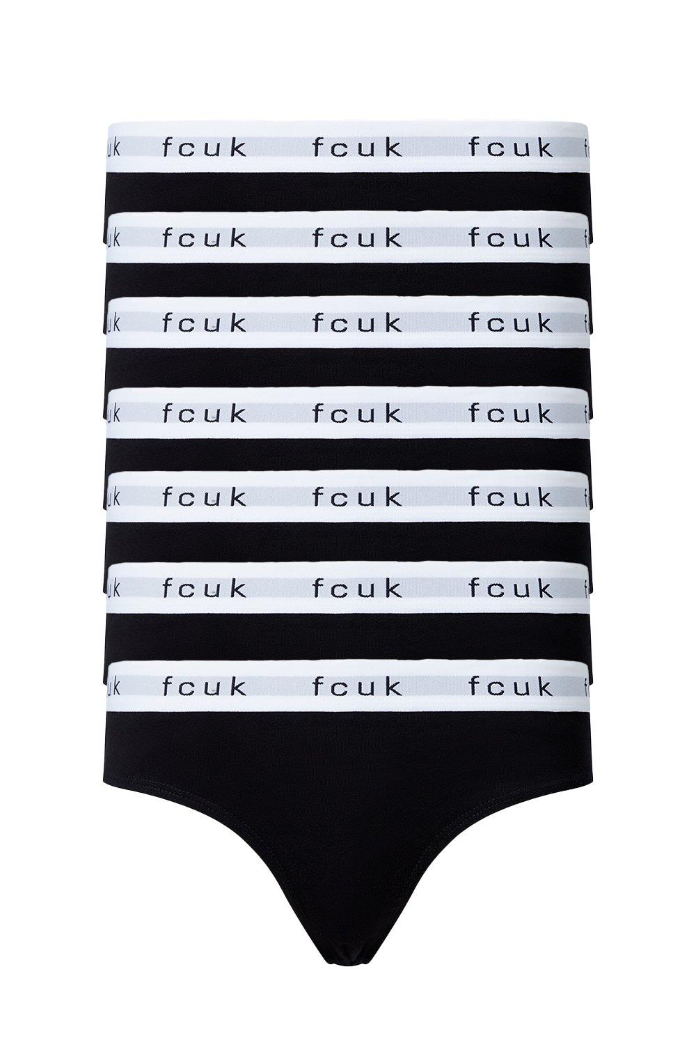 French Connection Womens Black 7 Pack Cotton Fcuk Ladies Briefs - Size X-Large