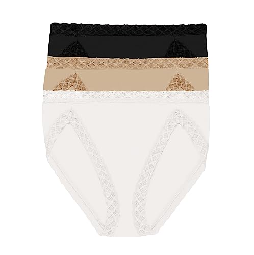 Natori Women's Bliss French Cut 3-Pack Briefs, Black/Café/White, Large (Pack of 3)