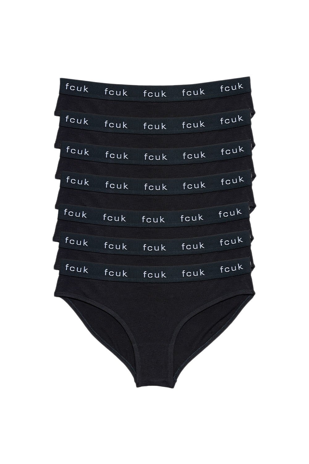 French Connection Womens Black 7 Pack Cotton Fcuk Ladies Briefs - Size Medium