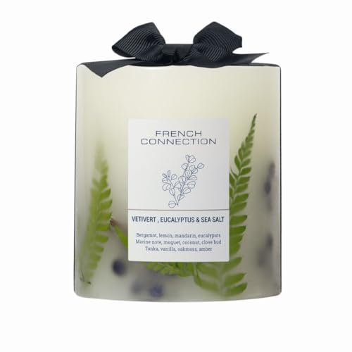French Connection Luxury Large Scented Candle Botanical Pillar Candle Gift for Women & Men-660g/50hr Long Burn Time with Eucalyptus & Fragrance Oil -Sleep & Relaxation Halloween Candle