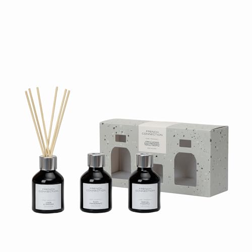 French Connection Scented Reed Diffuser Gift Set - 3 X 50ml,Candle Giftset for Women,Long-Lasting Fragrance Oil Diffuser,Lavender, Peony,Truffle -Aromatherapy for Bathroom, Kitchen & Living Room