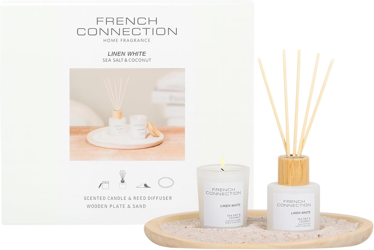 French Connection Linen White Home Fragrance Gift Set | Scented Candle & Reed D