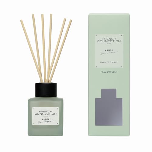 French Connection Square Range Scented Reed Diffuser | Luxury Home Fragrance with 6 Reeds | Long-Lasting Scent (100ML, Mango Mojito)