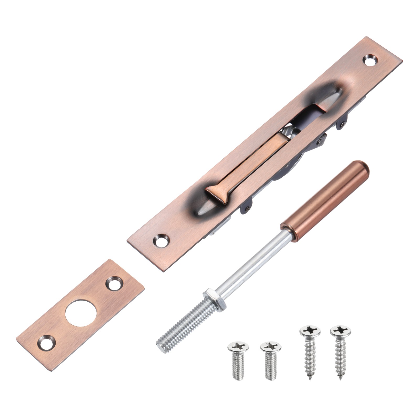 1 Pack 6 in Extension Flush Bolt with Rod for Double French Doors, Red Bronze