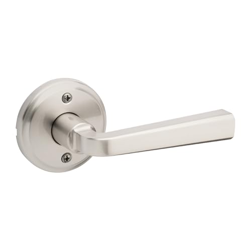 Kwikset Tustin Dummy Door Handle, Single Sided Lever for Closets, French Double Doors, and Pantry, Satin Nickel Non-Turning Right Handed Interior Push/Pull Lever, with Microban Protection