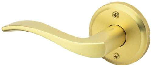 Kwikset Singapore Dummy Door Handle, Single Sided Lever for Closets, French Double Doors, and Pantry, Satin Brass Non-Turning Reversible Interior Push/Pull Lever, with Microban Protection