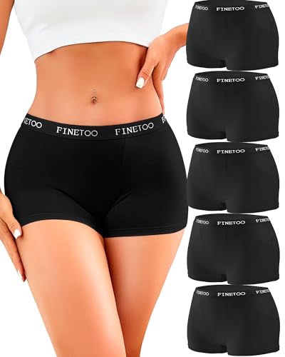 FINETOO Womens Boxer Shorts Underwear Women Cotton Pants Womens Knickers Multipack Soft French Knickers Comfortable Ladies Boy Shorts Sexy Panties Pack of 5 Black