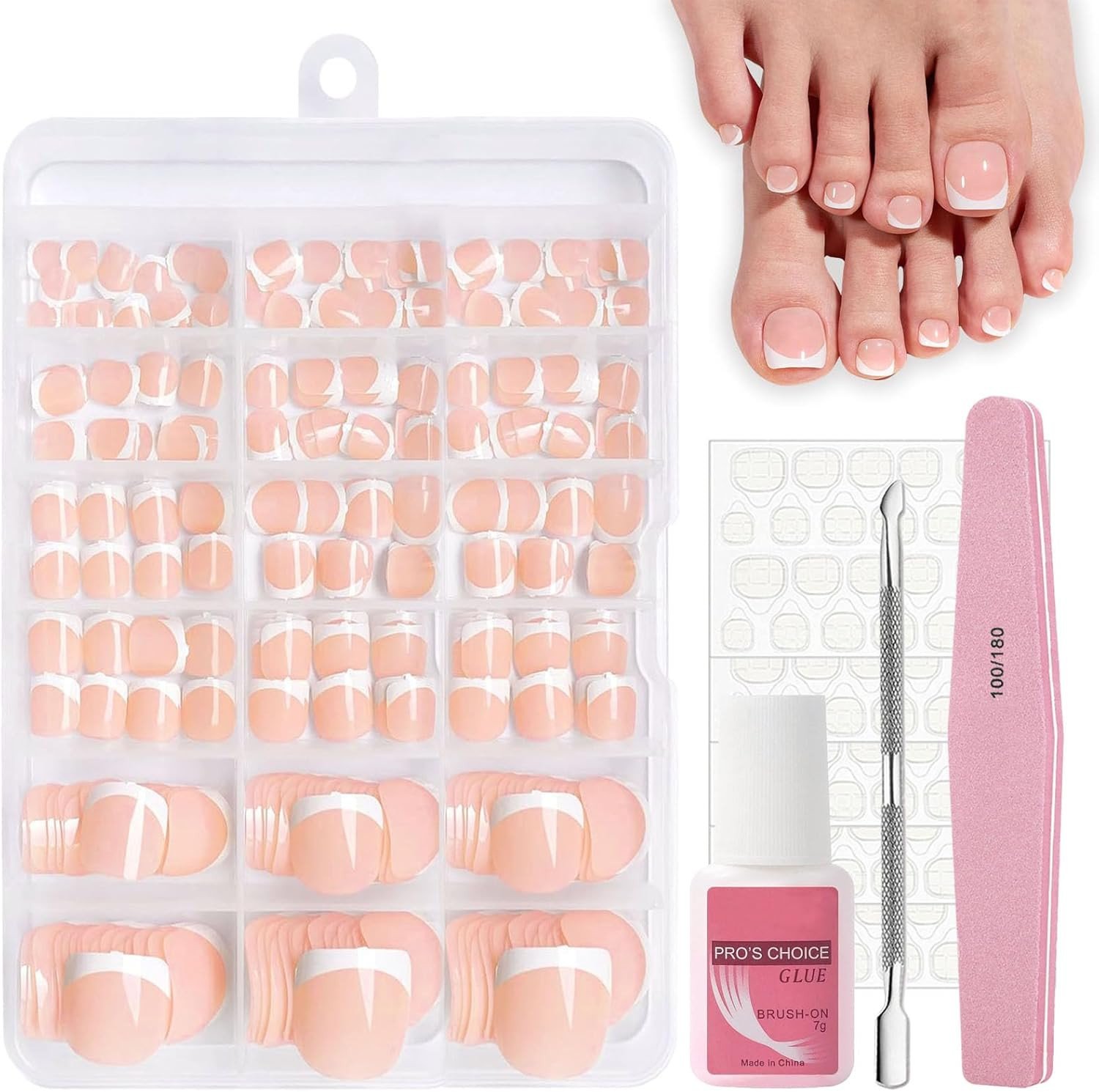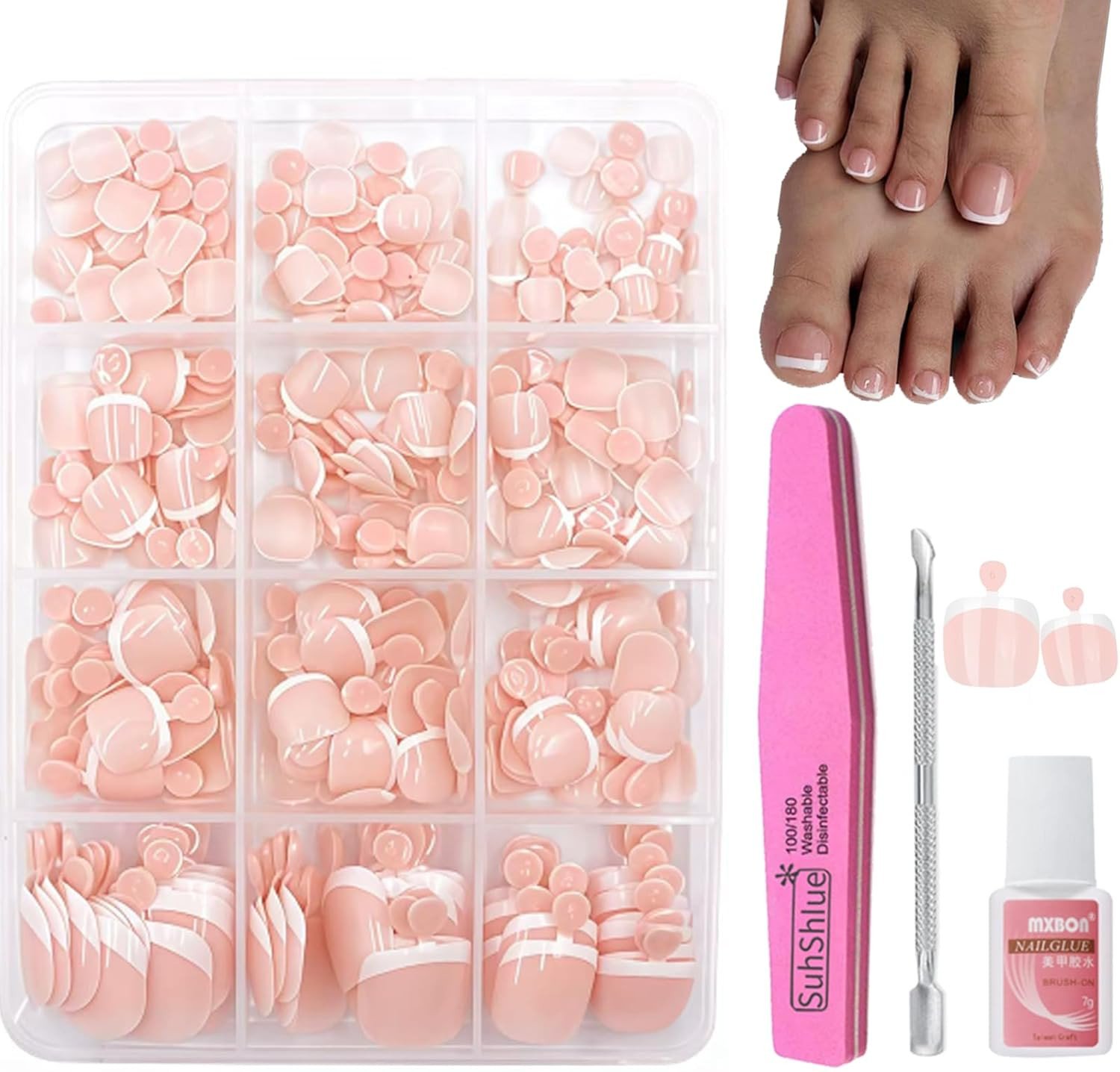 120Pcs French Tip Fake Toe Nails Kit - Nude Pink Short Square False Toenails Set
