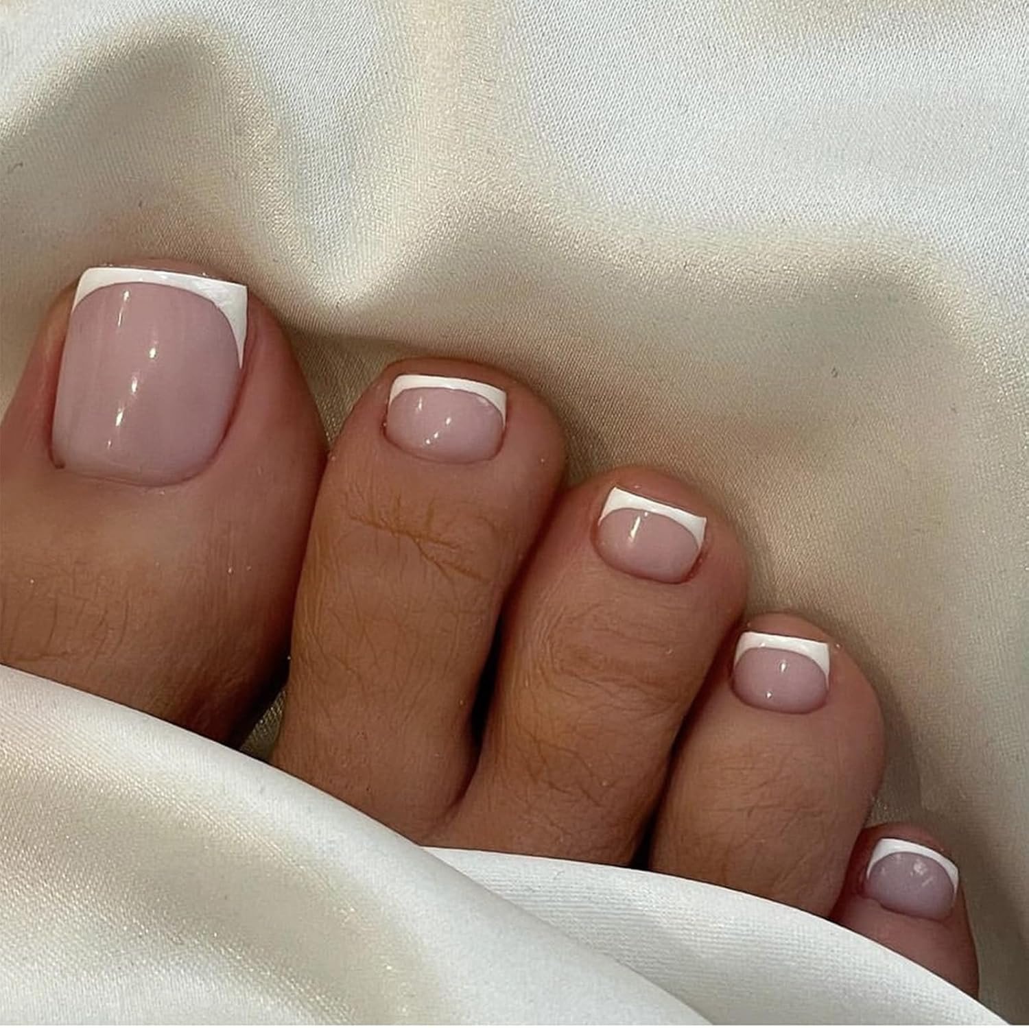 24Pcs Fake Toe Nails, False Toenails French Tip, Nude Short Square False Toe Nai