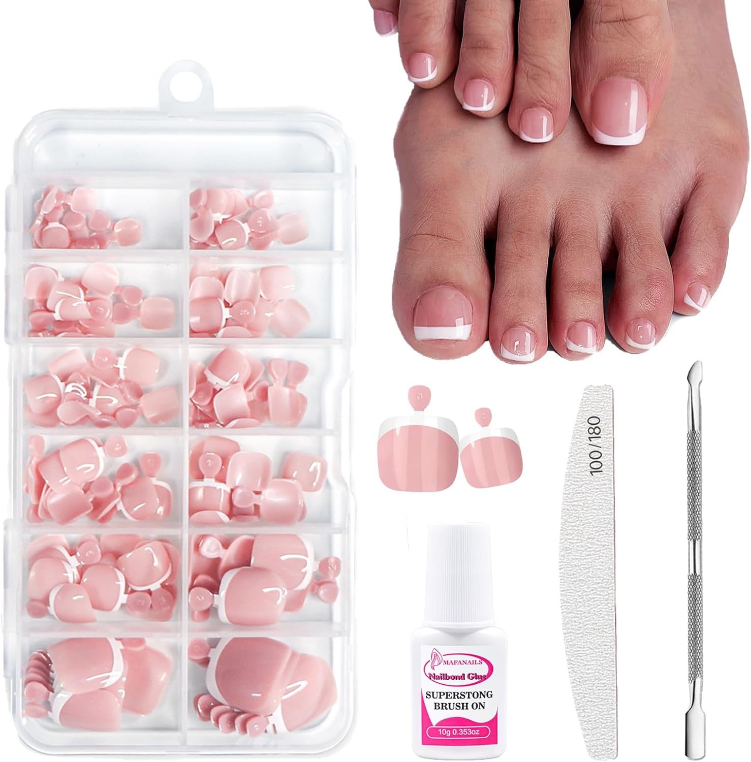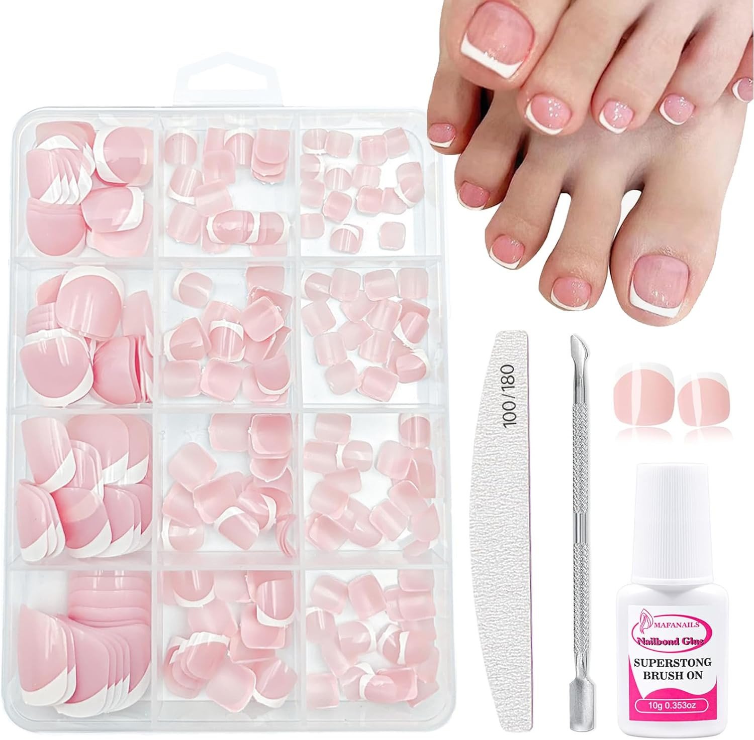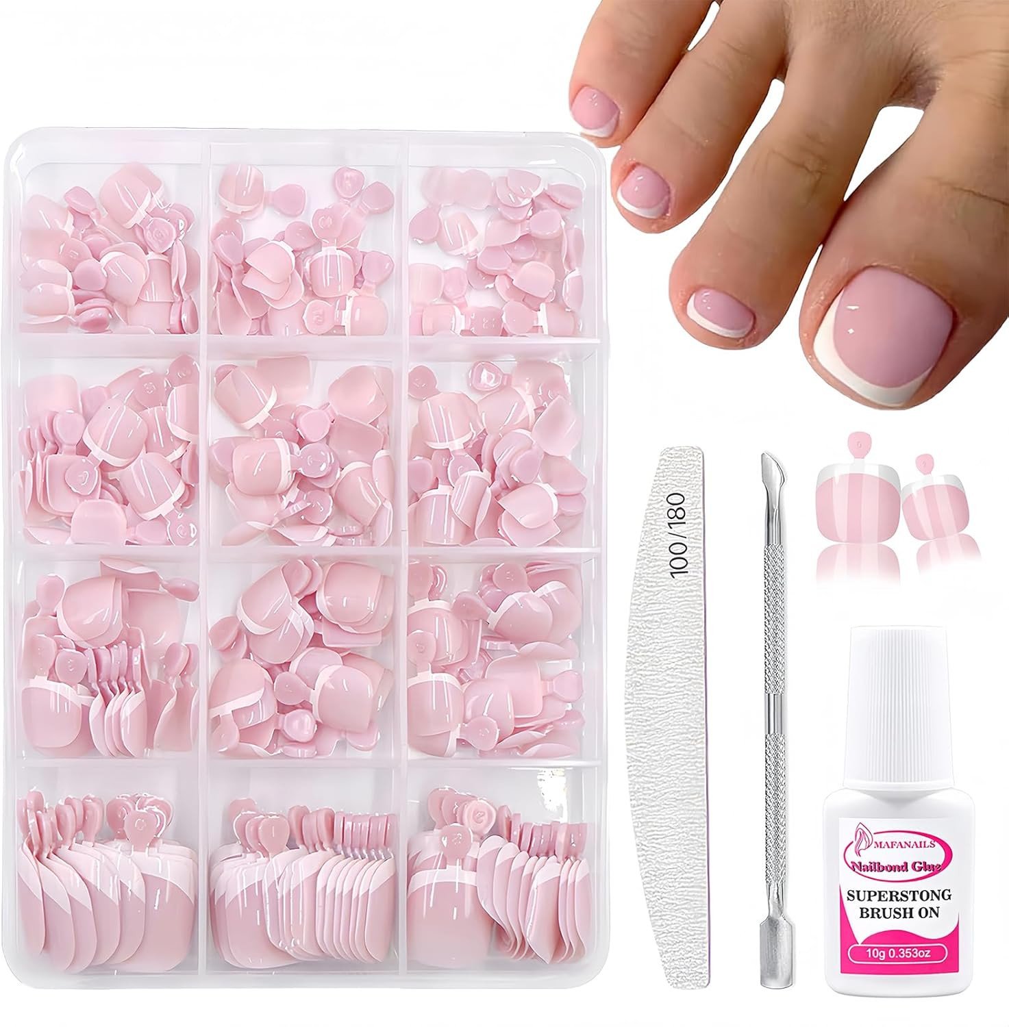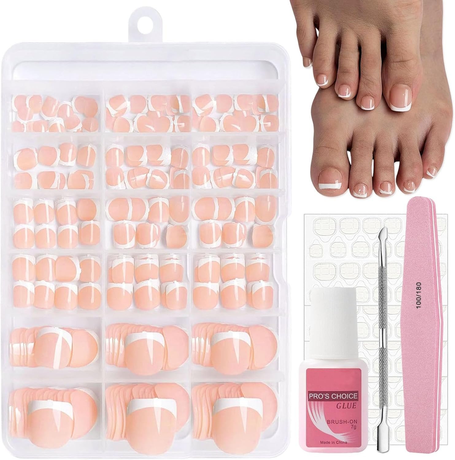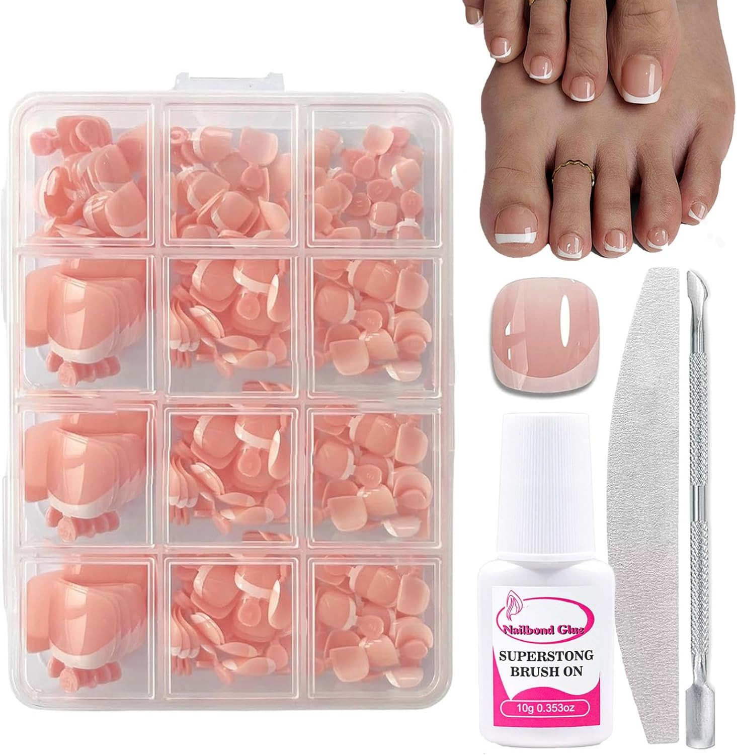 French Press on Toenails Kit, 240Pcs French Tip False Toenails Short, Square Fak