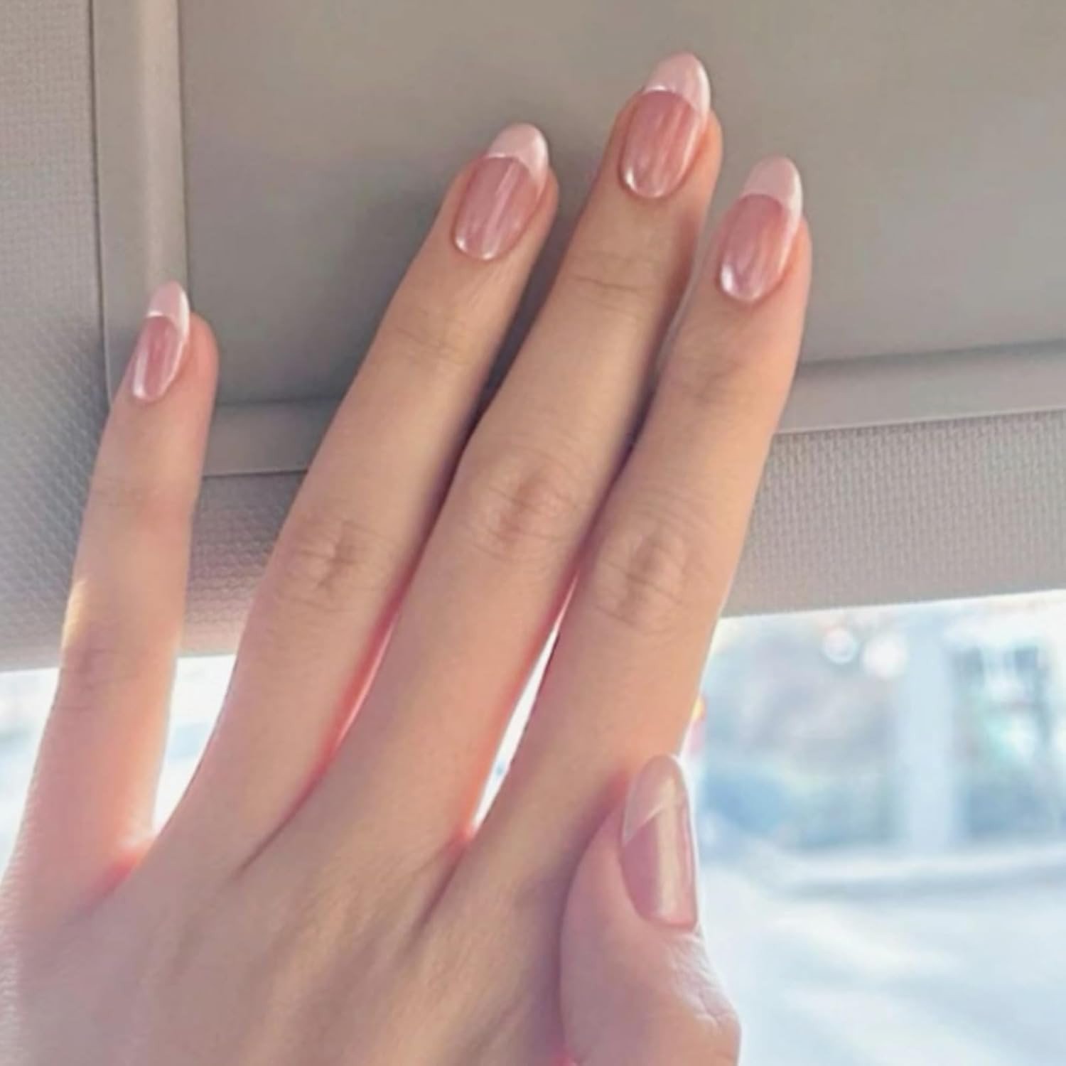 Stick on Nails, 24Pcs Almond French Tip False Nails Nude Pink, Fake Nail Short w