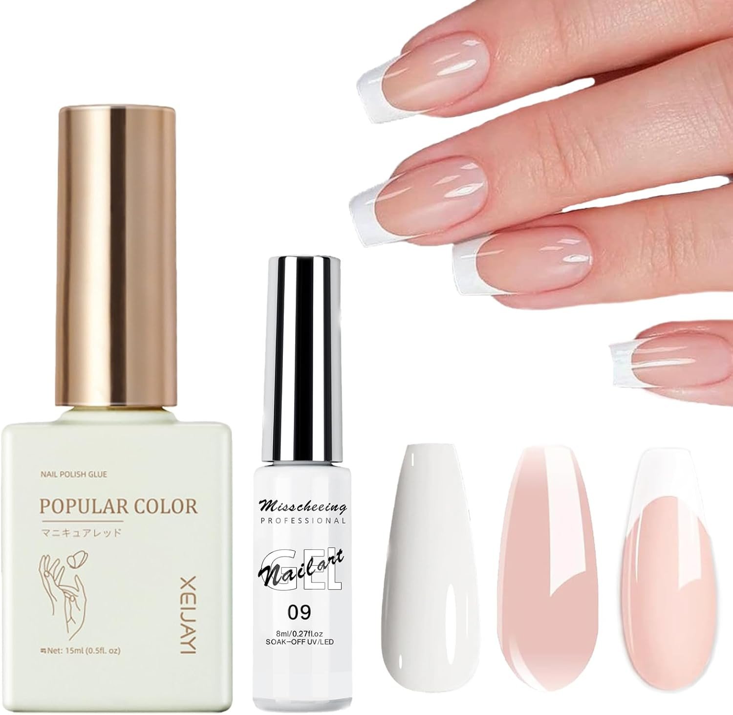 French Manicure Kit,Jelly Nude and White Polish Set for French Tip Manicure - Je
