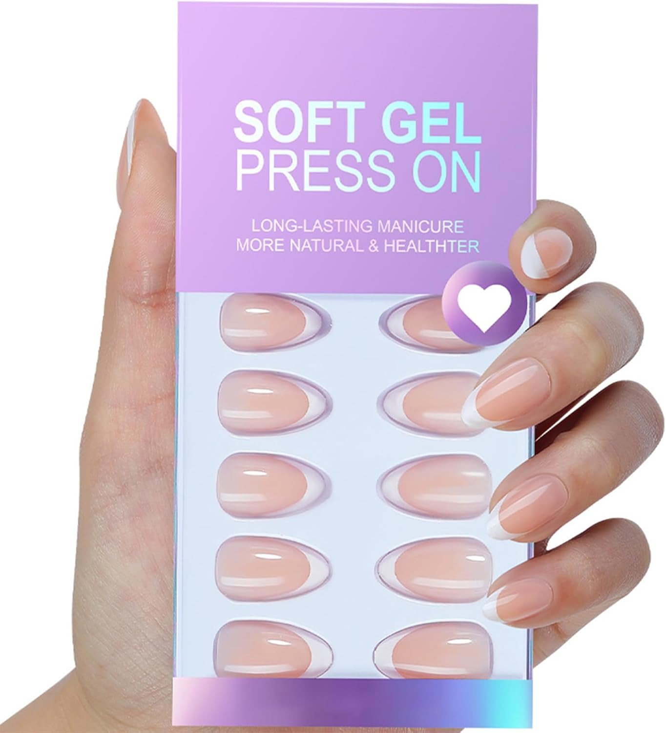 24 Pcs Kiss French Tip Nails, Stick on False Nails for Daily Wear