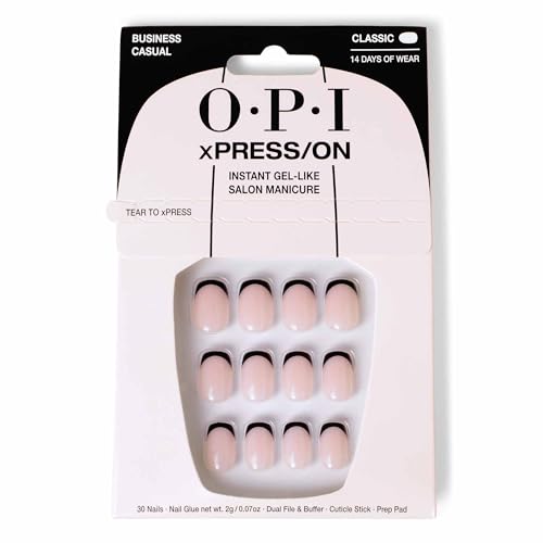 OPI xPRESS-ON Business Casual - Black French Tip Short and Round Shaped Press On Nails - With Nail Glue - Long Lasting, Reusable and Non-Damaging French Tip False Nails