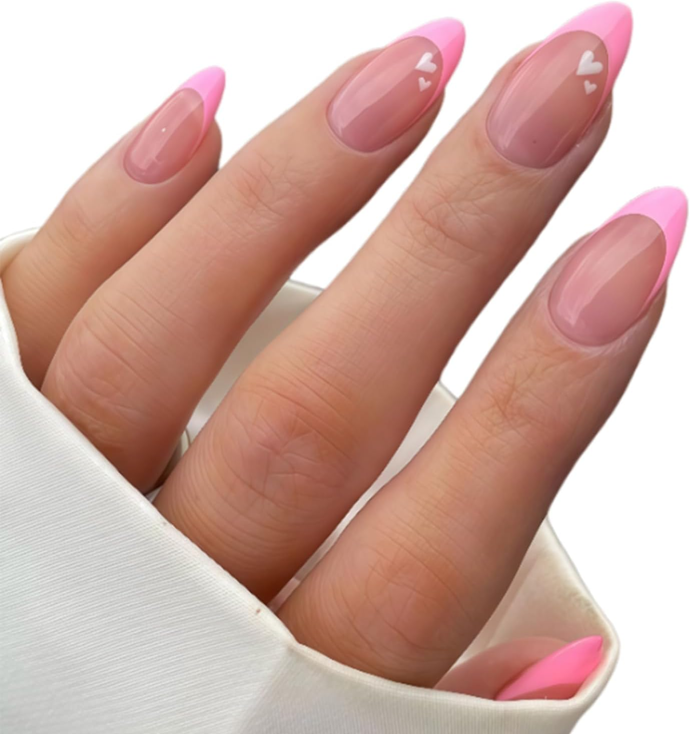 Pink Press on Nails French Tip - Short Almond Press on Nails - 24Pcs Pink False