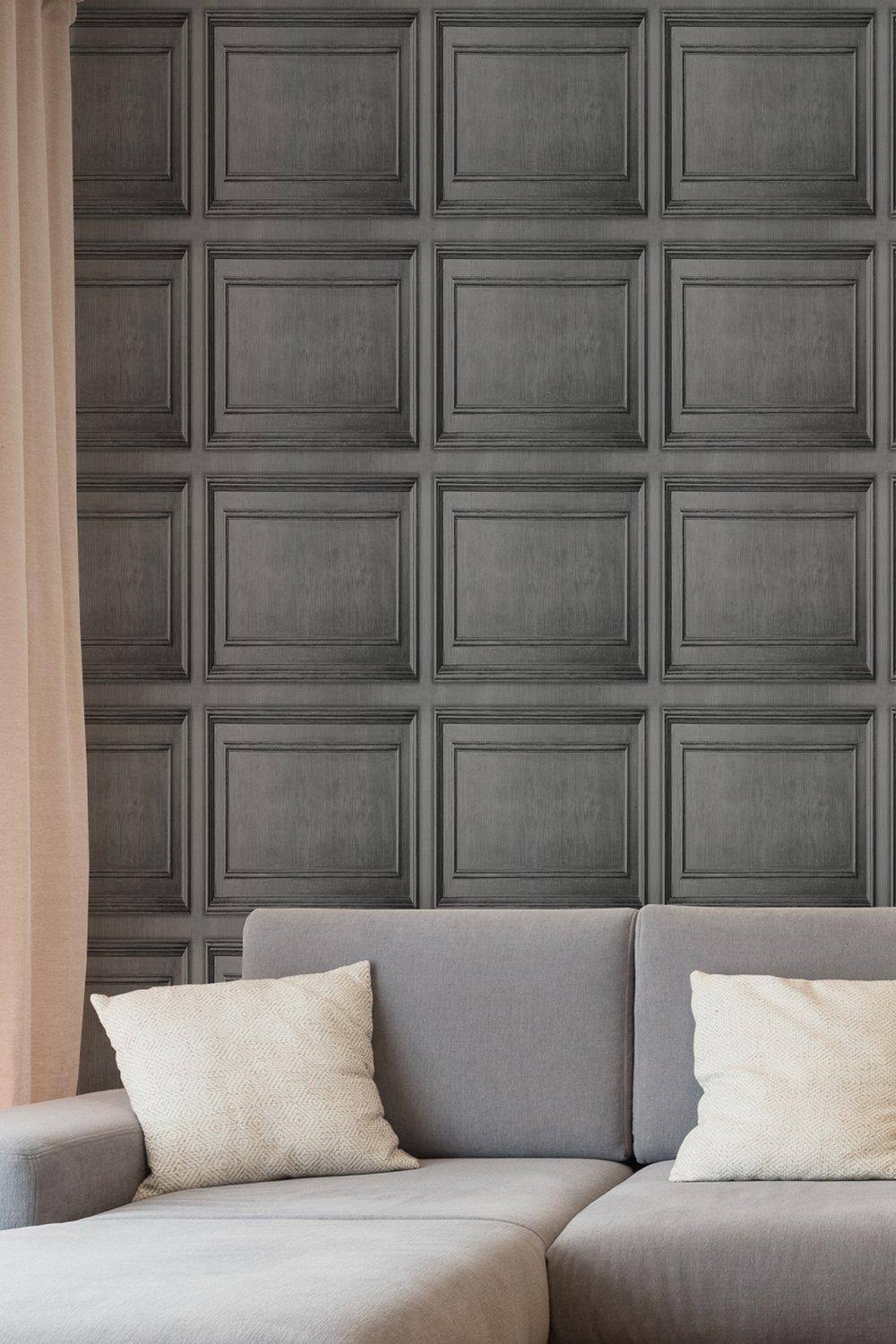 Fresco Wood Panel Charcoal Wallpaper Traditional 52 x 1000 cm 2 Rolls #9360
