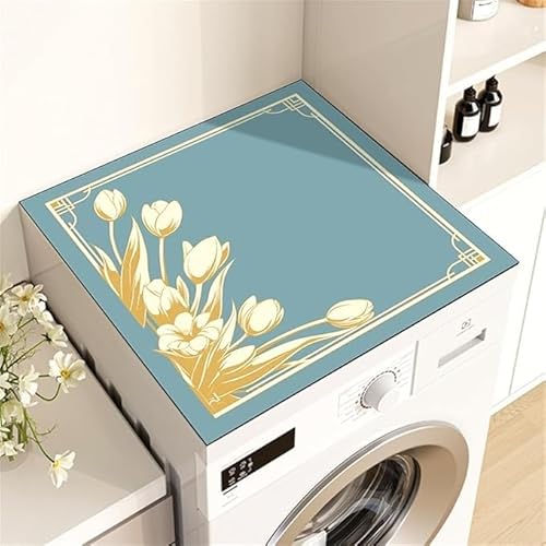 Washing Machine Dryer Dust Cover Pink Tulip Flowers Print Oven Microwave Refrigerator Top Protector Coffee Drain Mat Simple Fresh Home Decoration(F,50x50cm)