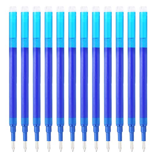 Ezigoo 12 Pack Erasable Pen Refills, 0.7mm Blue Friction Ink Refills for Rub Out Pens, Compatible with Most Rollerball Erasable Pens - Smooth Writing for School, Office & Home