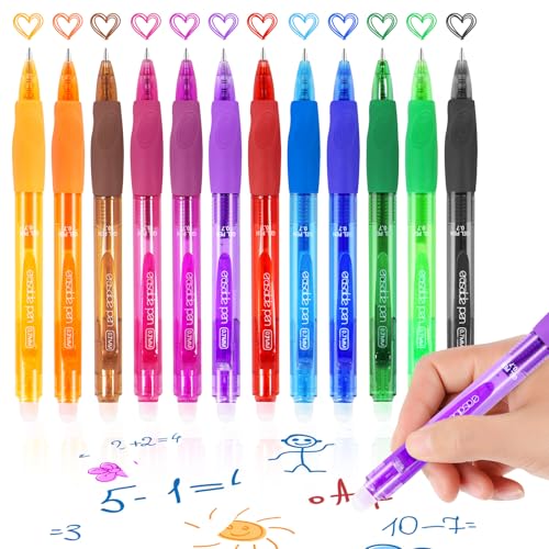 Vosyinm Erasable Pens Rub Out Pen - 12 Colors Heat Friction Erase Pen Set 0.5mm Erasable Gel Ink Pens Writing Retractable Pen with Rubber on the End for Kids Adults School Office Stationery Supplies