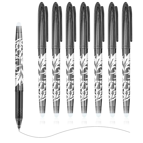 8 Pcs Erasable Pens Black Friction Pen 0.7mm Gel Pen for Writing Erasable Gel Ink Eraser Pens with Rubber on the End for Kids Adults School Work Paperwork Stationary Back to School Supplies