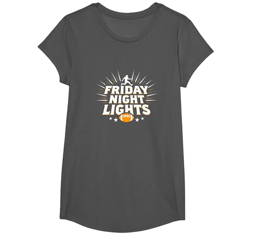 Girls Football Friday Night Lights Game Day Spirit T-Shirt, Girls, Asphalt, XS