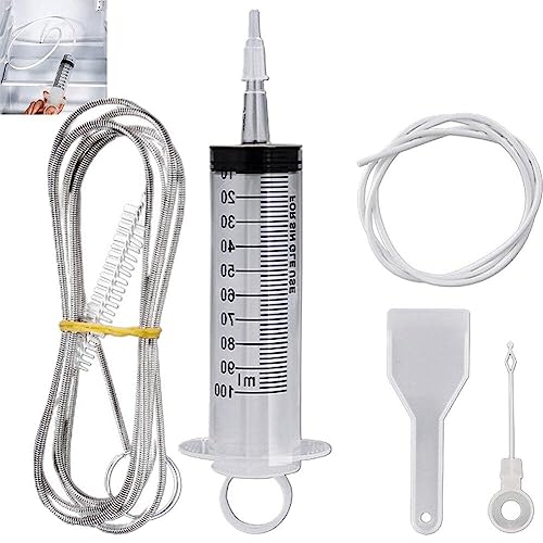 Fridge Drain Cleaning Kit, 5 Pack Reusable Refrigerator Dredger Set with Flexible Tubes & Syringe, Professional Drain Hole Cleaner for Freezers, Wine Coolers & Ice Makers, Prevents Water Leaks & Odour