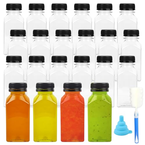 WENLISELL 32 Pcs 250ml/8oz Clear Juice Bottles, Plastic Bottles with Lids, Reusable Empty Bottles for Mini Fridge, Juice, Beverages, Smoothie, Water
