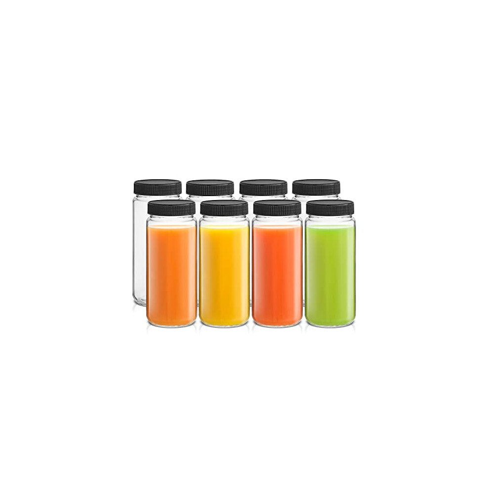 JoyJolt Glass Juice Bottles 16 oz Glass Bottles with Caps. Set of 8 Juice Containers with Lids for Fridge and Labels for Juice Jars. Glasses for Ju