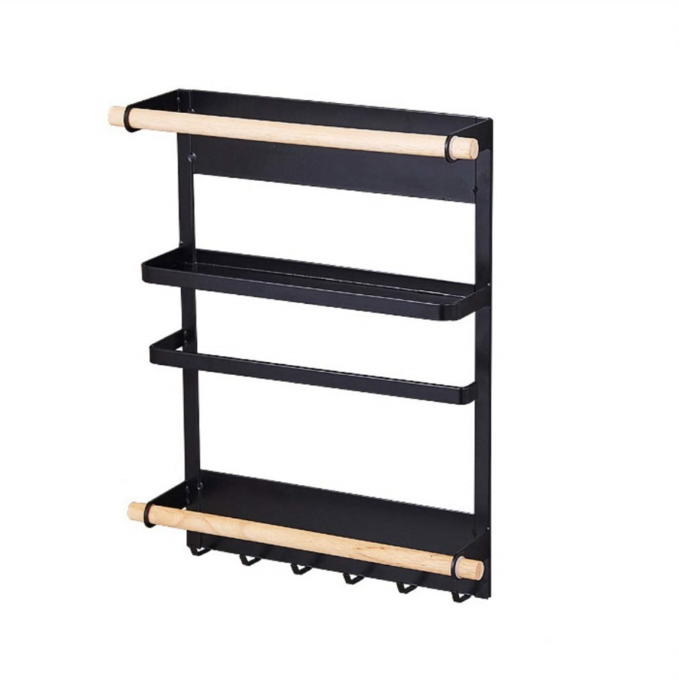 Fridge Door Wall Mount Magnetic Paper Towel Organizer Rustproof Spice Jars Cupboard Multipurpose Refrigerator, Black