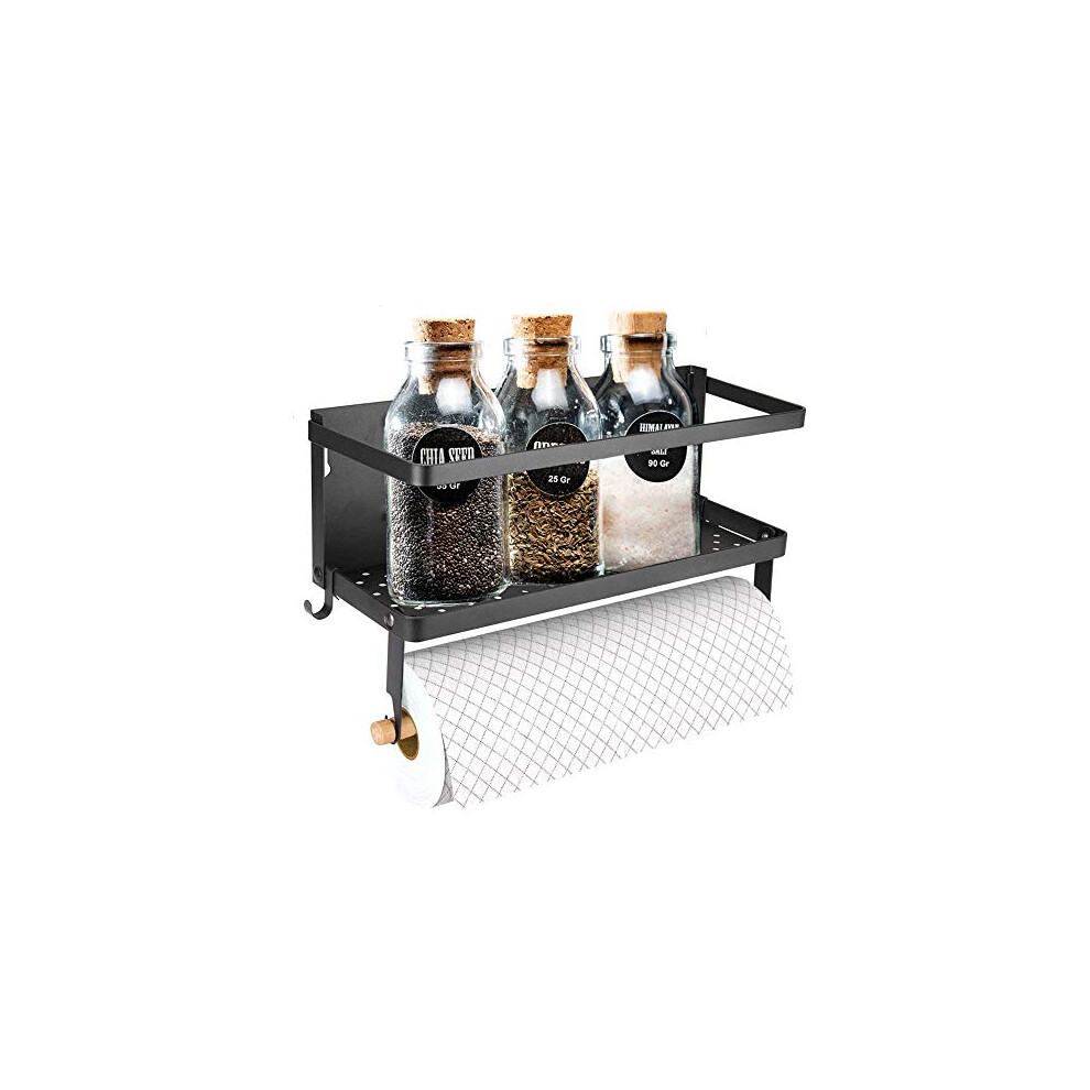 Magnetic Spice Rack Organisers, Fridge storage Organzers, with Paper Towel Holder Holds up to 11 LBS Kitchen Shelf for Spice Jars(black)ï¼
