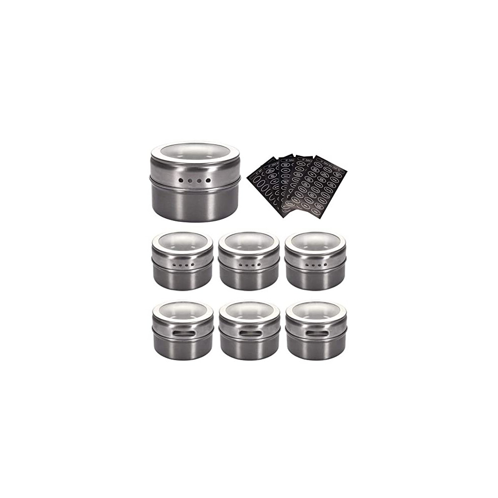Stainless Steel Spice Jars, Magnetic Condiment Tins, Magnetic Spice Tins on Fridge (Pack of 6, 120 Labels)