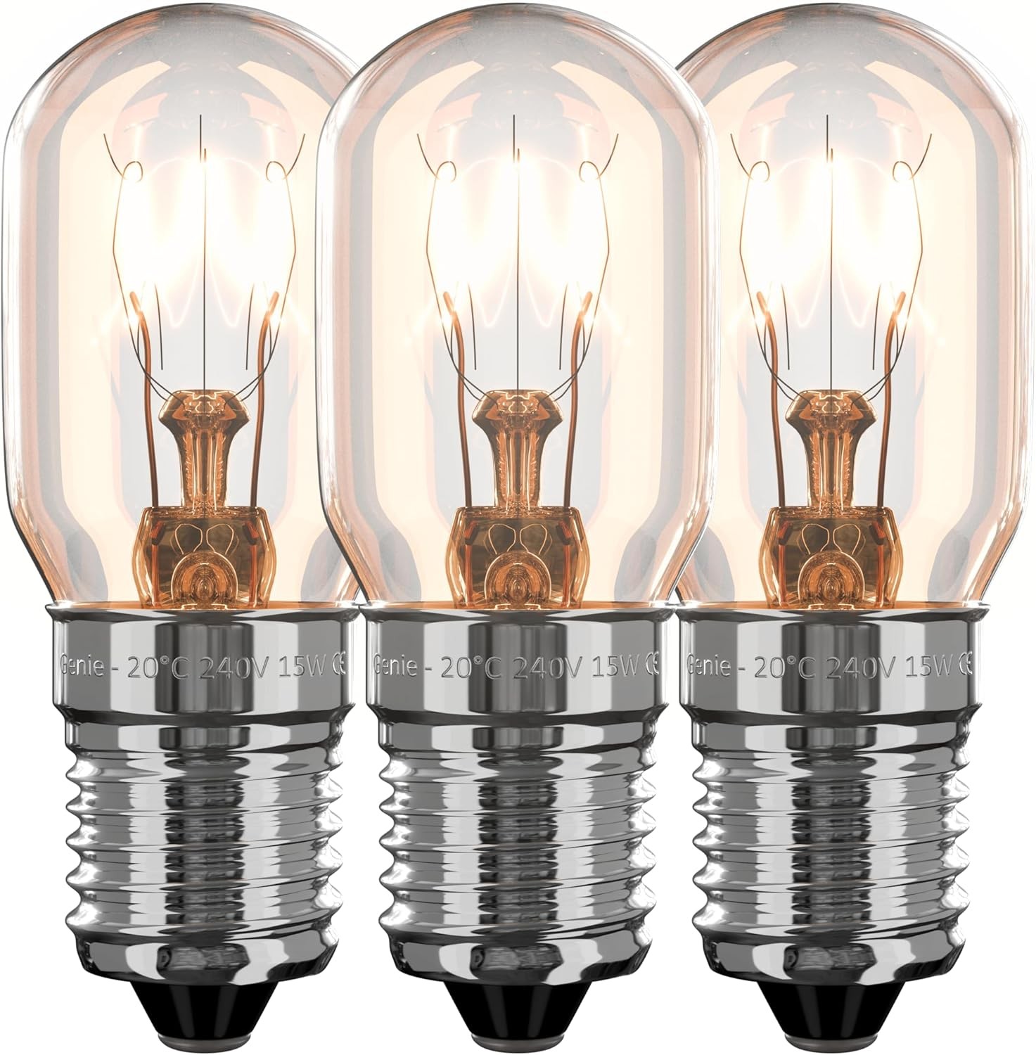 Genie 15W E14 Fridge Light Bulb -20°C Tolerant Glass 230V Pygmy SES (Pack of 3) Incandescent Bulbs 2700K Warm White | Suitable for Fridges or Freezers | Small Edison Screw Base