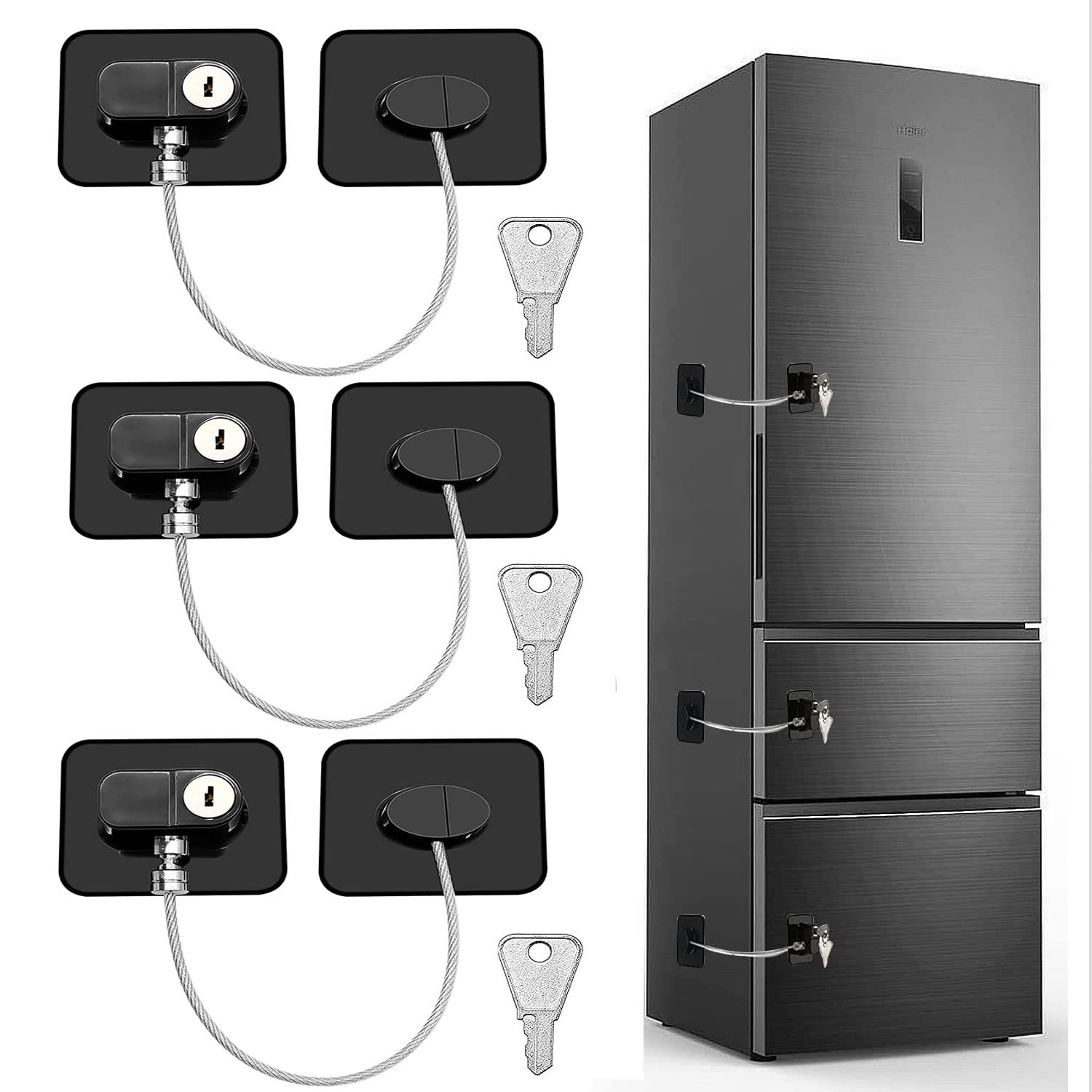 Child Safety Fridge Locks, 3pcs Adjustable Refrigerator Door Lock, Child Proof