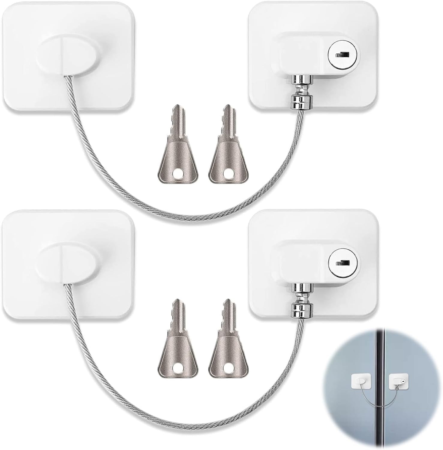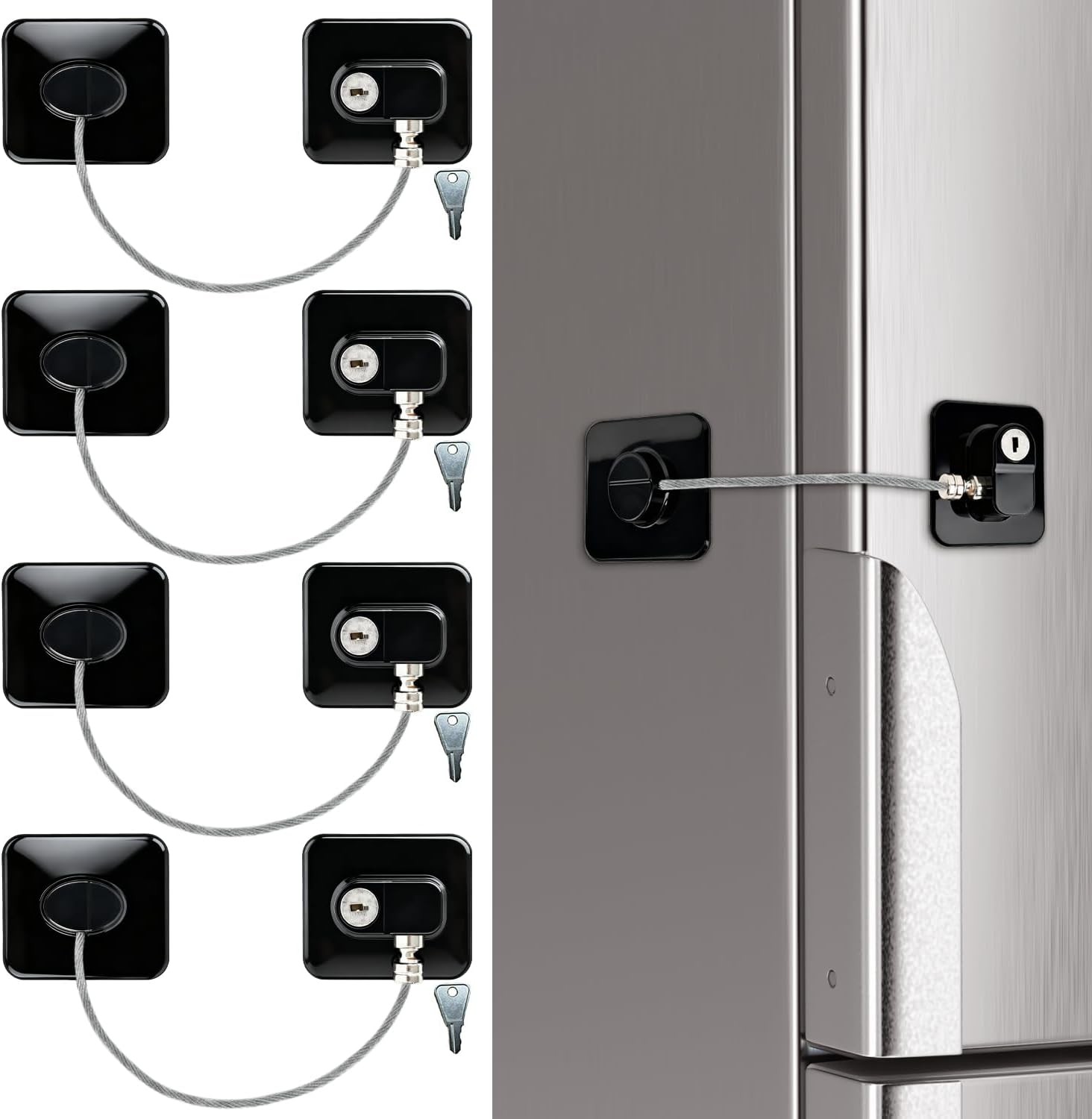 4 Pack Fridge Locks with Keys for Child Safety, Adhesive Refrigerator Lock and