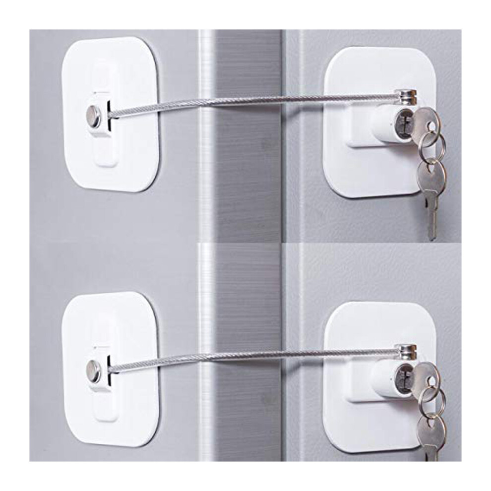 Refrigerator Lock, Mini Fridge Lock with Key for Adults, a Fridge, Cabinet Door(White 2Pack)