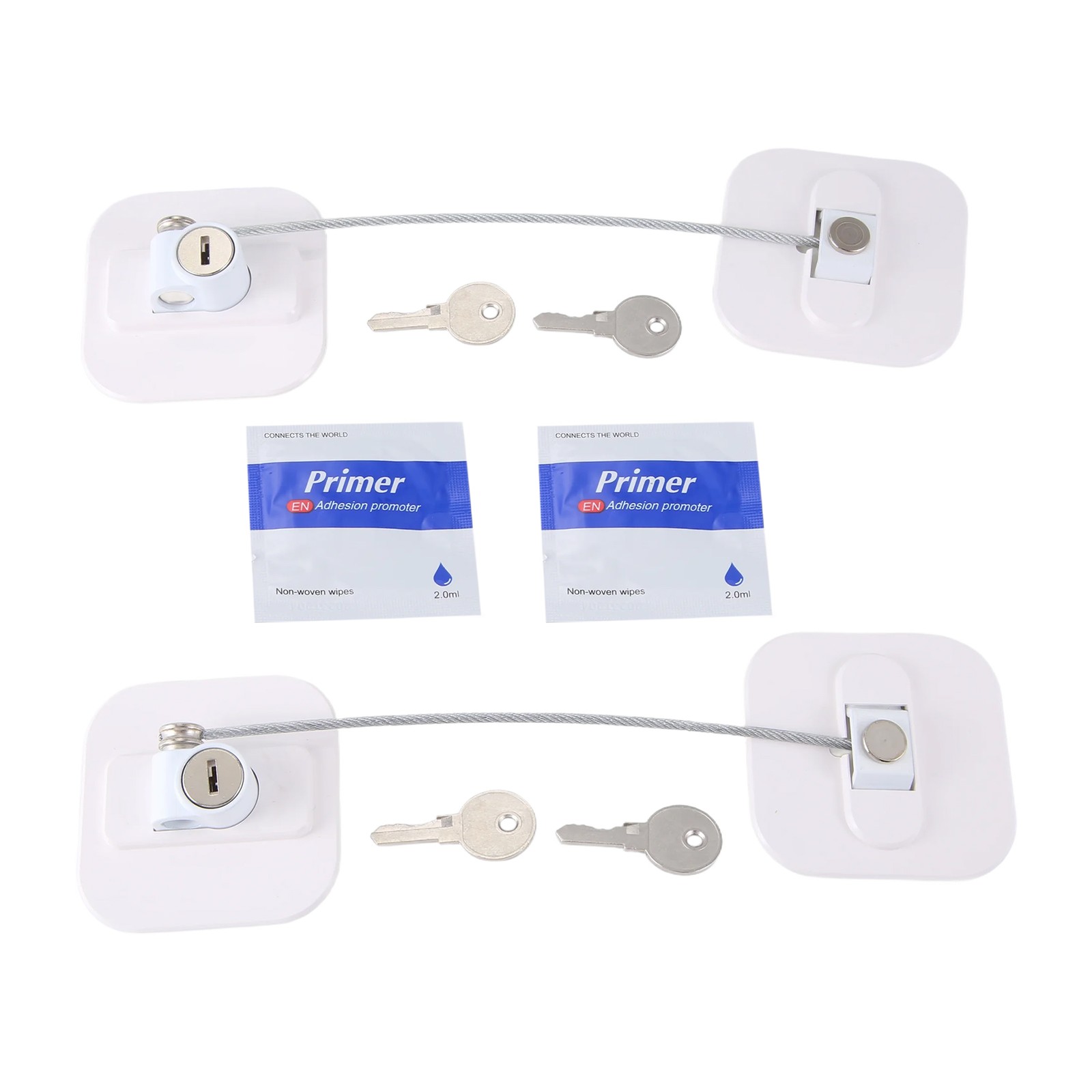 Baby Safety Cupboard Locks 2 Pack No Drilling Removable Baby Proof Drawer Locks Strong Adhesive Fridge Lock with Key Alloy Zinc Childproof Cabinet