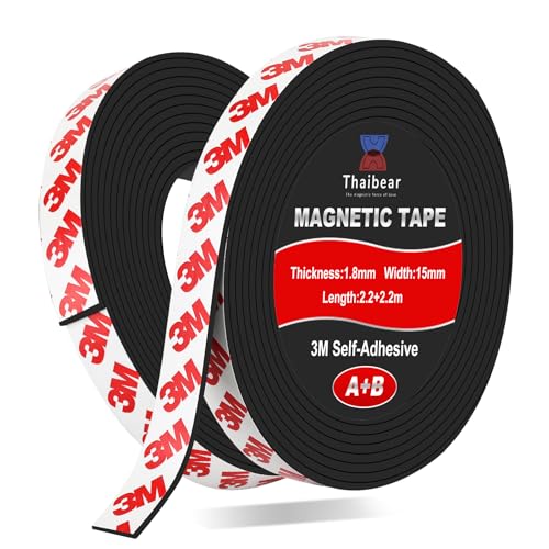 Thaibear A+B Magnetic Tape, Magnetic Strips with 3M self adhesive Backing (2.2m +2.2m A and B Polarity), Magnet Tape Strip Roll Perfect for for Fly Screen, DIY, Art Projects, Fridge