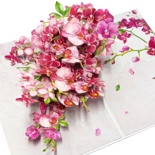 YianHien 3D Birthday Cards for Women, Orchid Flower Pop Up Birthday Card for Mum Wife Auntie Sister Daughter Special Friend Female, Wedding Anniversary Card for Wife, Valentine's Day Mother's Day Card
