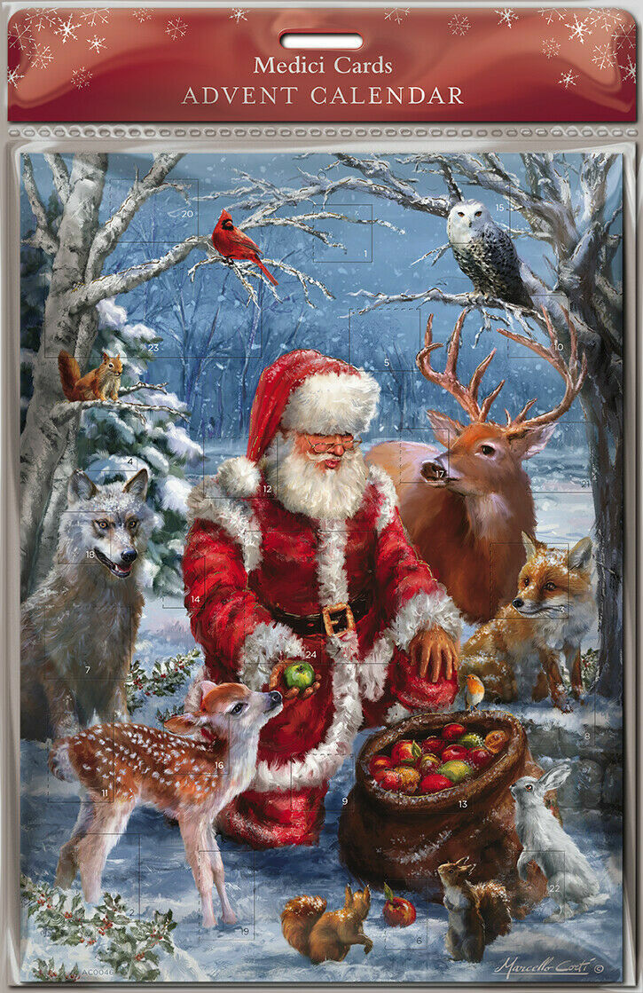 Santa and Deer - SANTA & FRIENDS Advent Calendar 23 x 33 cm env Medici gold foil