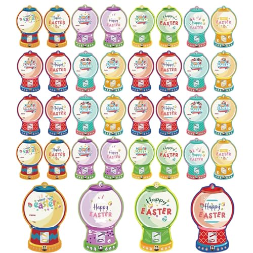 Candy Cards - Easter Festive Supplies Gift Set, 36 Pieces Diy Candy Exchange Cards with Transparent Cover, Fun Bubble Gum Machine Design | Perfect for Friends Coworkers Neighbors Home Office Family