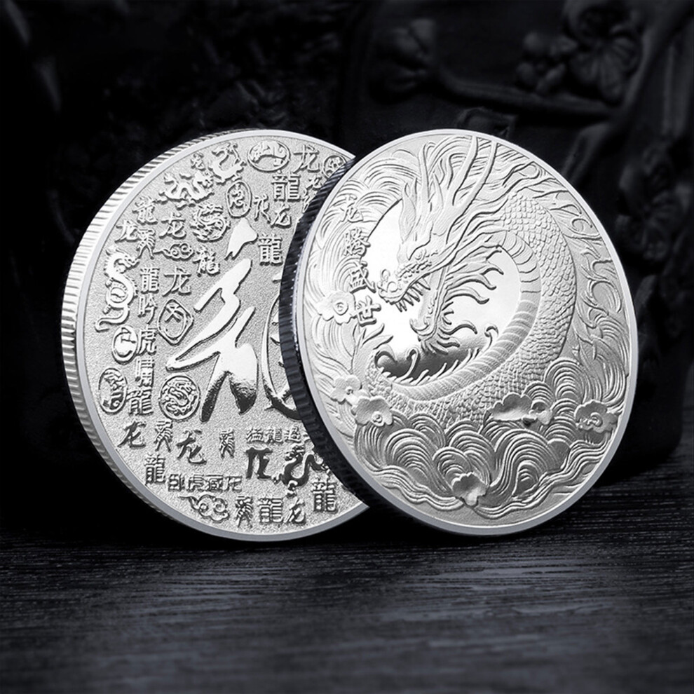(Silver) Coin, Chinese Luck Coin, 2024 Plated Commemorative Coin With Chinese Letters, New Year Gifts For Children, Friends, Neighbors