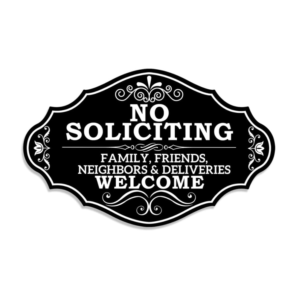 Maoerzai No Soliciting Sign Family Friends and Neighbors Welcome Front Door Sign Funny No Soliciting Sign for House Modern Desi