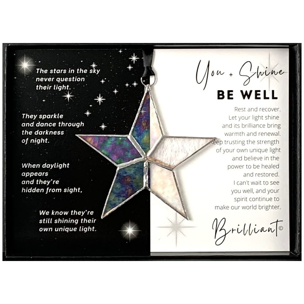 Handmade Iridescent Stained Glass Star with Be Well Message - Get Well Soon Gift for Friends/Neighbors/Coworkers/Family- After Surgery Gift- Feel Bett